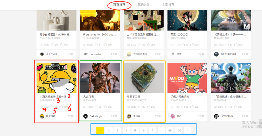 start_urls = ['https://www.zcool.com.cn/home?p=1#tab_anchor'] # 第一页的url