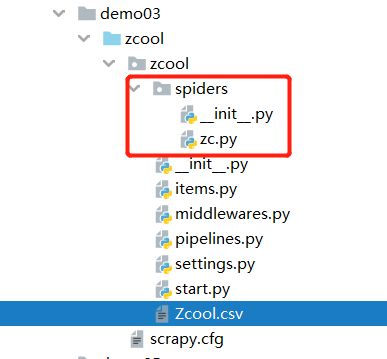 当我们创建了一个scrapy项目后,继续创建了一个spider,目录结构是这样的: