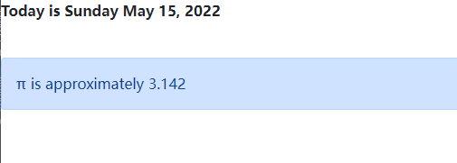 pyscript.write('pi', f'π is approximately {pi:.3f}')