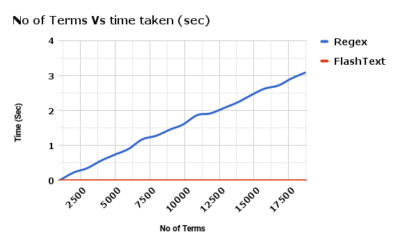 附 FlashText 与正则相比 替换关键词 所花费的时间之比: