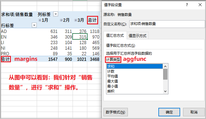 aggfunc 相当于上述"结果"中的计算类型;