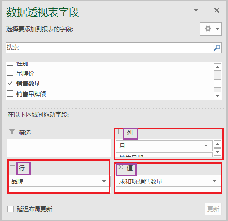 columns 相当于上述"数据透视表字段"中的列;