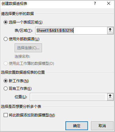 ③ 选择在Excel中的哪个位置,插入数据透视表