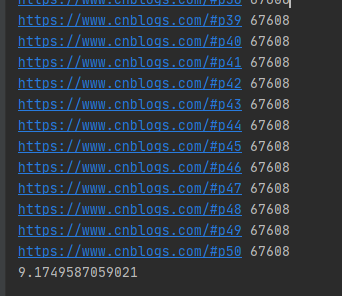 单线程爬取50个博客园网页用了9秒多,单线程的发送网络请求的URL是按顺序的。