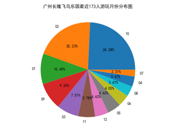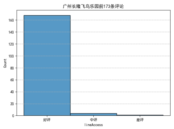 我们发现10月、2月、1月去广州长隆飞鸟乐园游玩的人数占总体比例最多。分析完月份后,我们来看看评论情况如何: