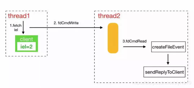 如上文所提到的,一个链接的创建、接收数据、发送数据、释放链接都必须在同个线程执行。异步发送涉及到两个线程之间的交互。KeyDB通过管道在两个线程中传递消息: