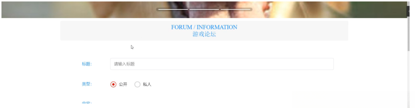 游戏论坛,在游戏论坛页面通过填写标题、类型、内容等信息进行发布帖子,如图5-5所示。