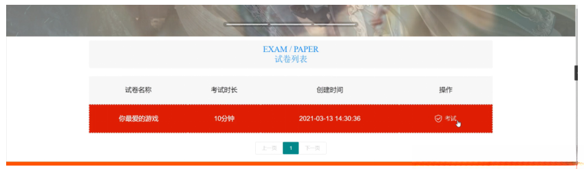 试卷列表,在试卷列表页面可以查看试卷名称、考试时长、创建时间等信息,进行考试操作,如图5-6所示。
