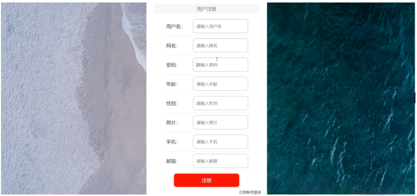 用户注册,在用户注册页面通过填写用户名、网名、密码、年龄、性别、照片、手机、邮箱等信息完成用户注册,如图5-2所示。