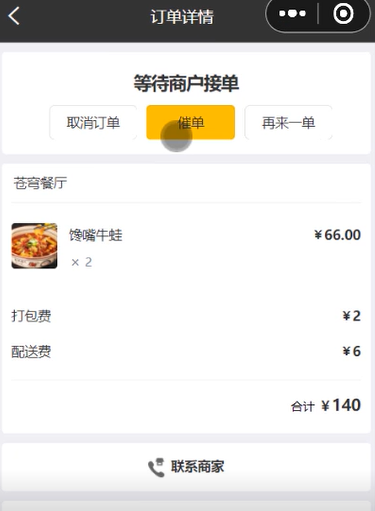 用户可在订单列表或者订单详情,进行催单