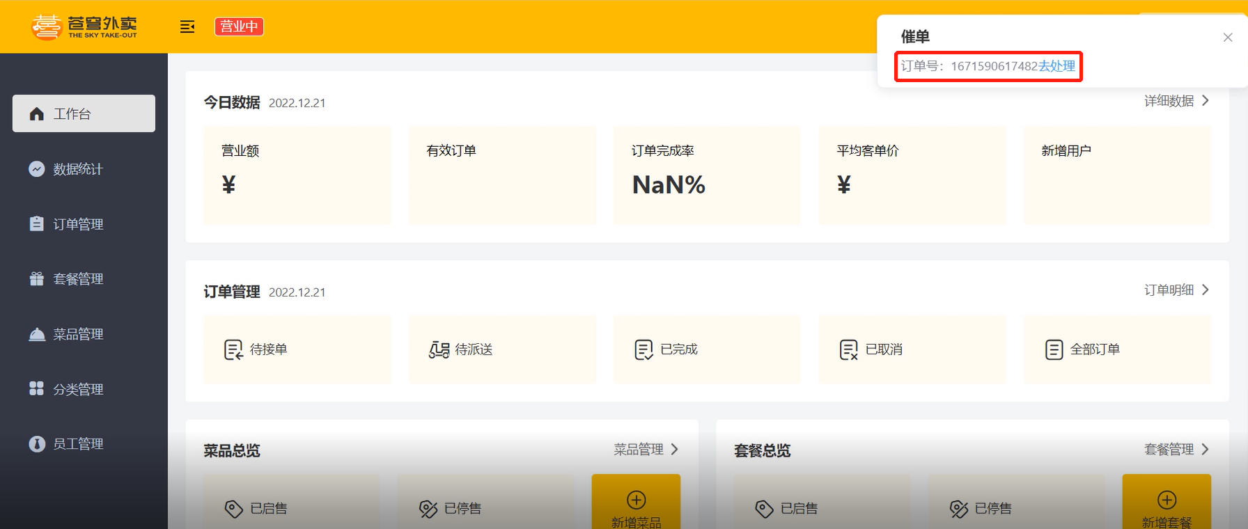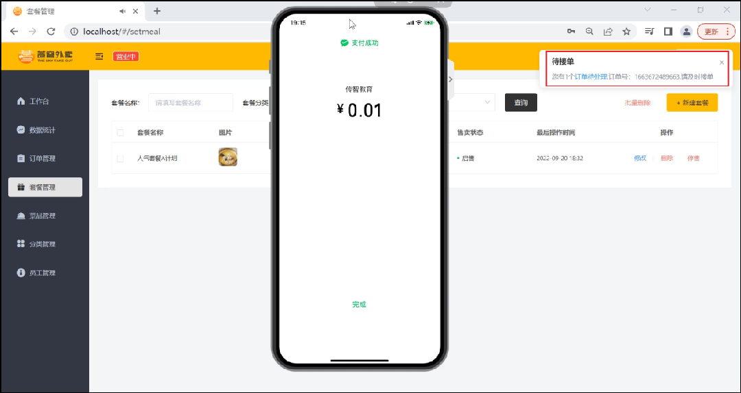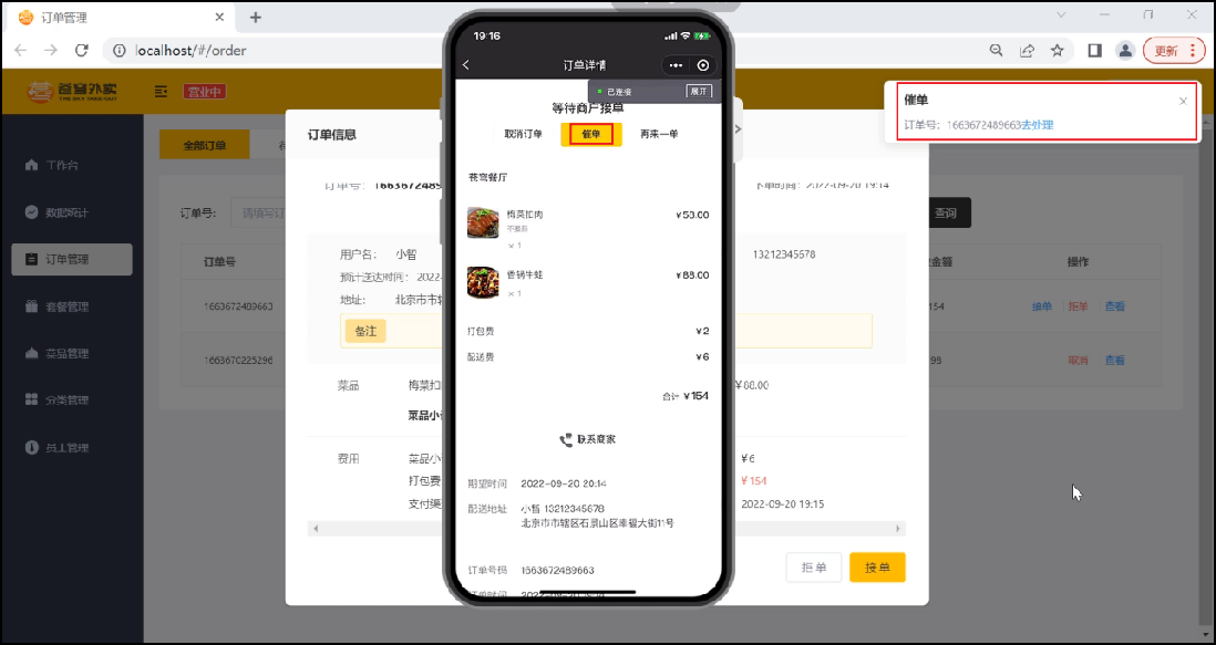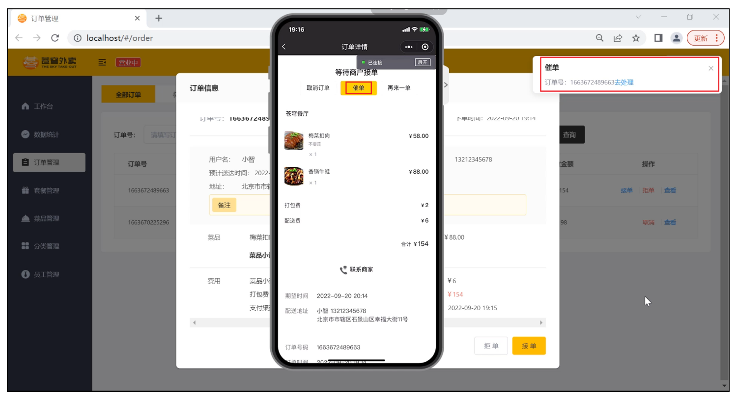既有催单弹窗,同时语音播报