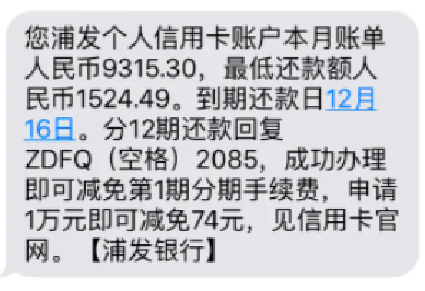 1). 信用卡每月还款提醒