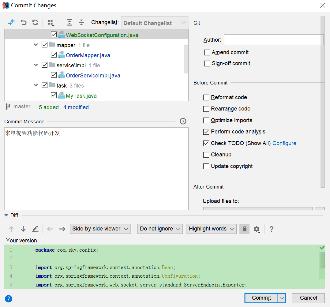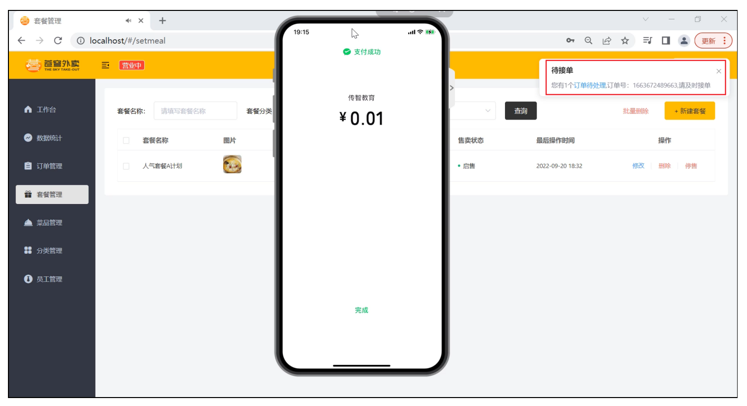 支付成功后,后台收到来单提醒,并有语音播报,如果出现一直响不停的情况,我们只需要把WebSocketTask中的定时任务注释掉就可以了。