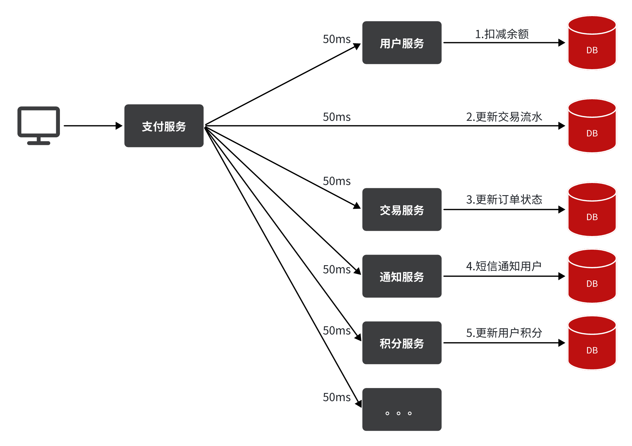 假如每个微服务的执行时长都是50ms,则最终整个业务的耗时可能高达300ms,性能太差了。