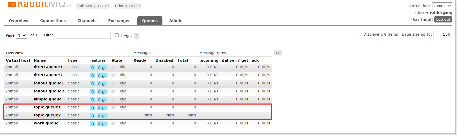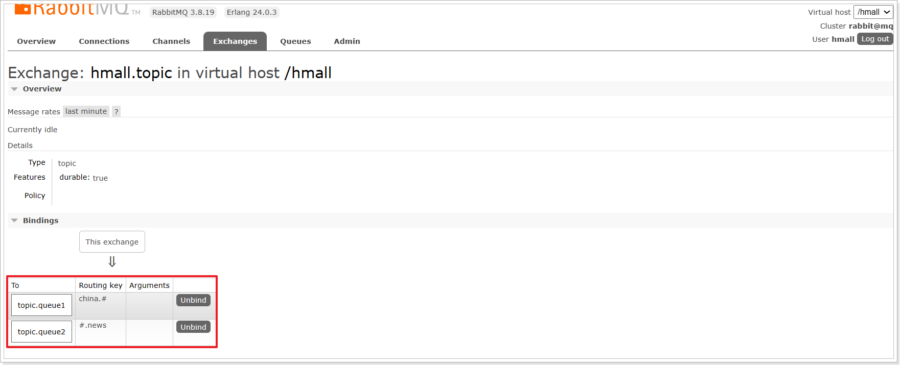 cart.clear.queue与trade.topic绑定,RoutingKey为order.create -