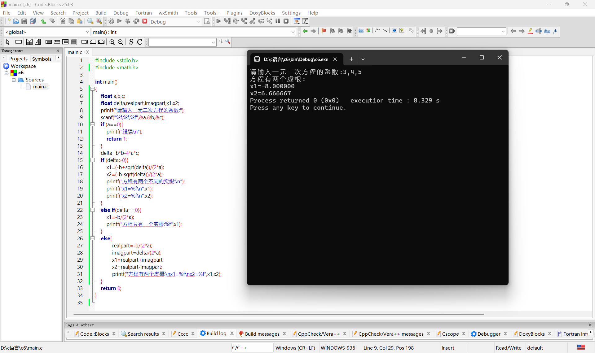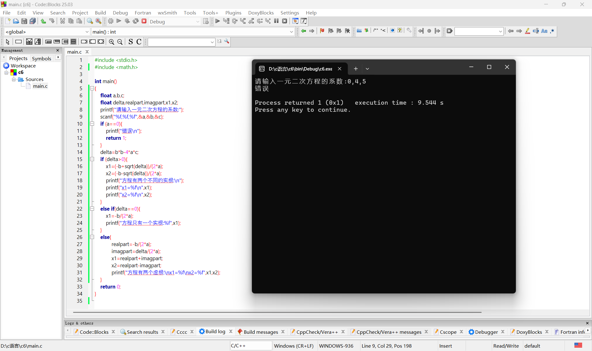 printf("请输入一元二次方程的系数:");