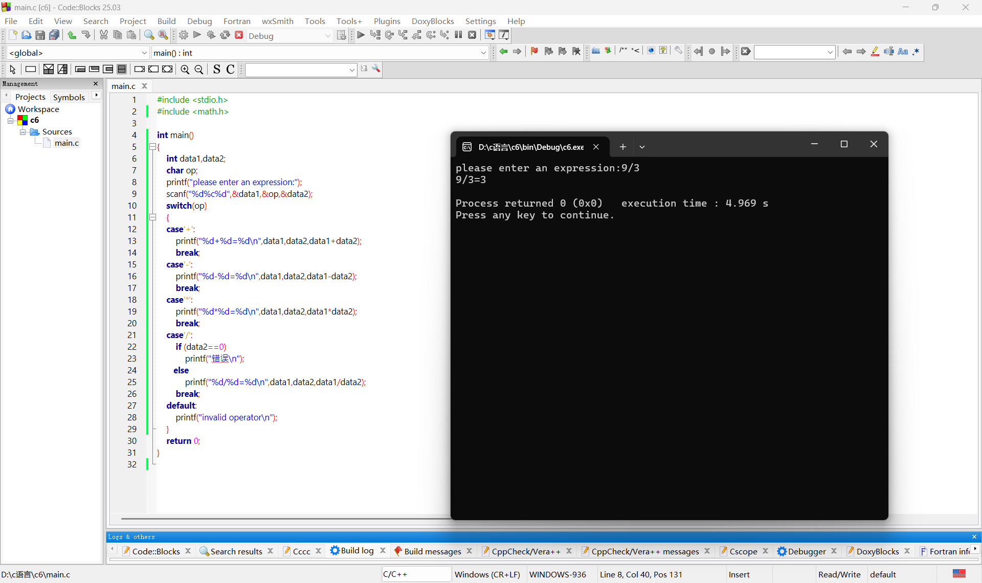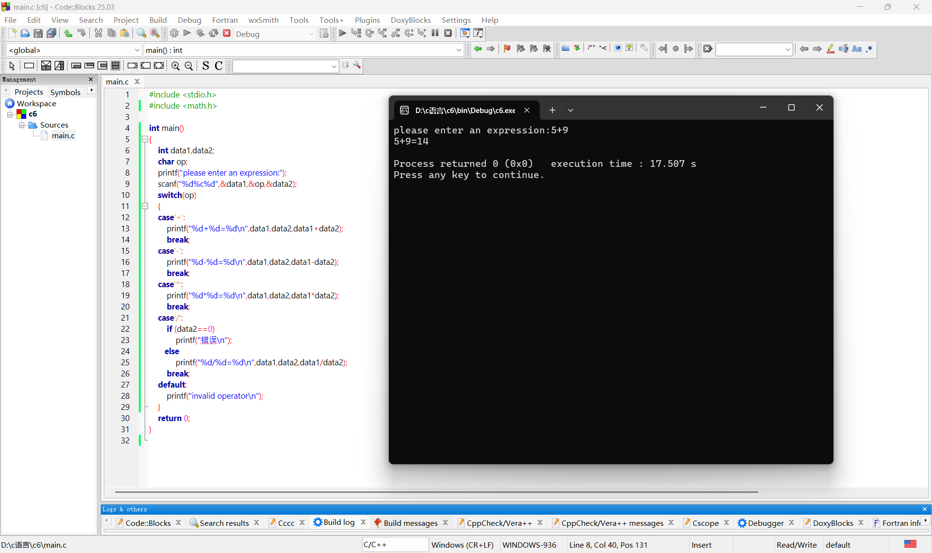 printf("please enter an expression:");