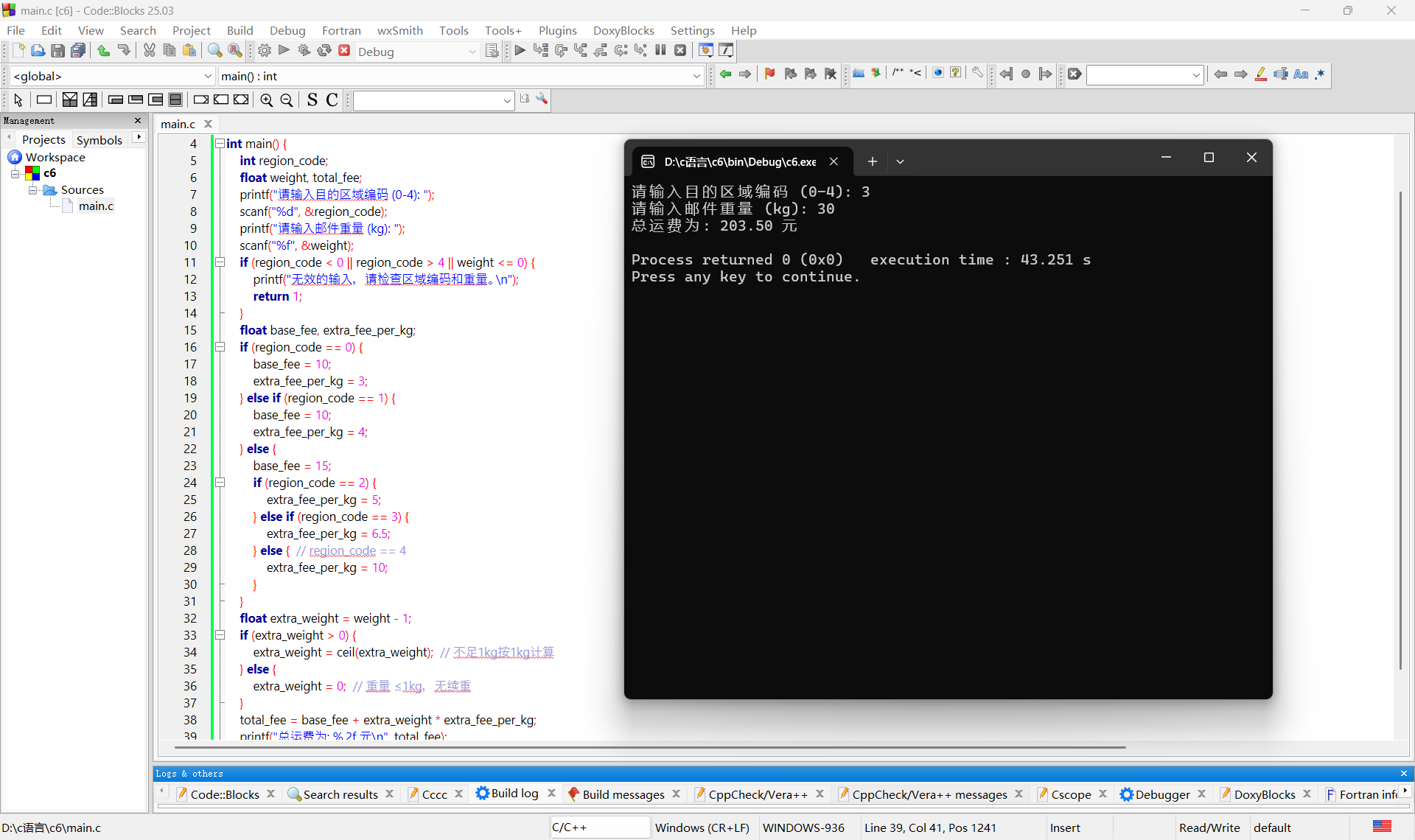 printf("请输入邮件重量 (kg): ");