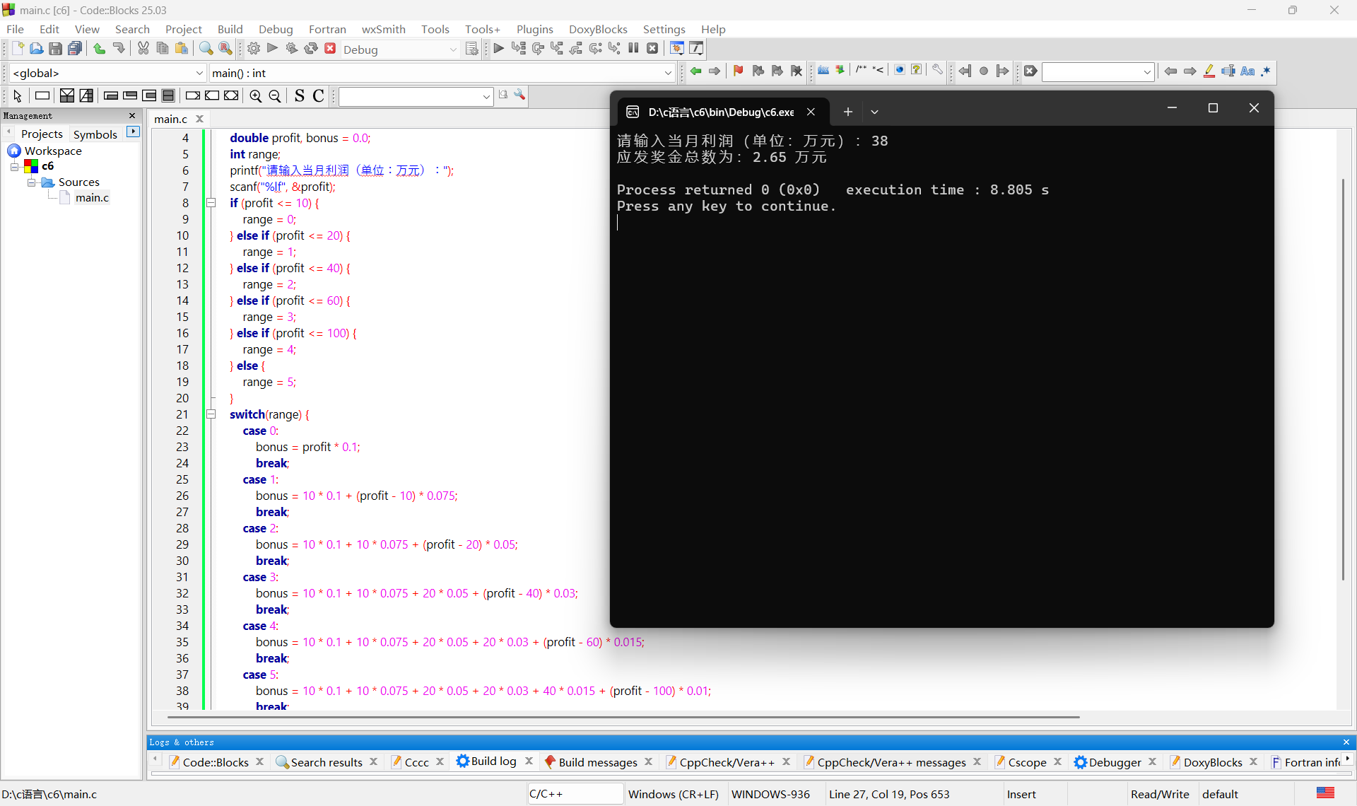printf("请输入当月利润(单位:万元):");