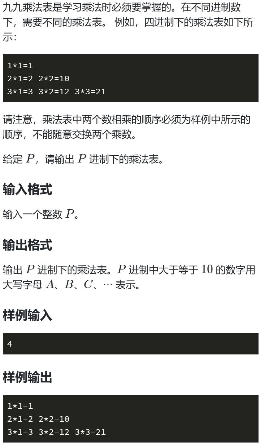开始想用函数解决问题,利用进制转换的知识来解决。在写完发现错误,检查后知道了我只把结果变成想要的进制形式,而前面两个乘数没有变成想要的进制形式。