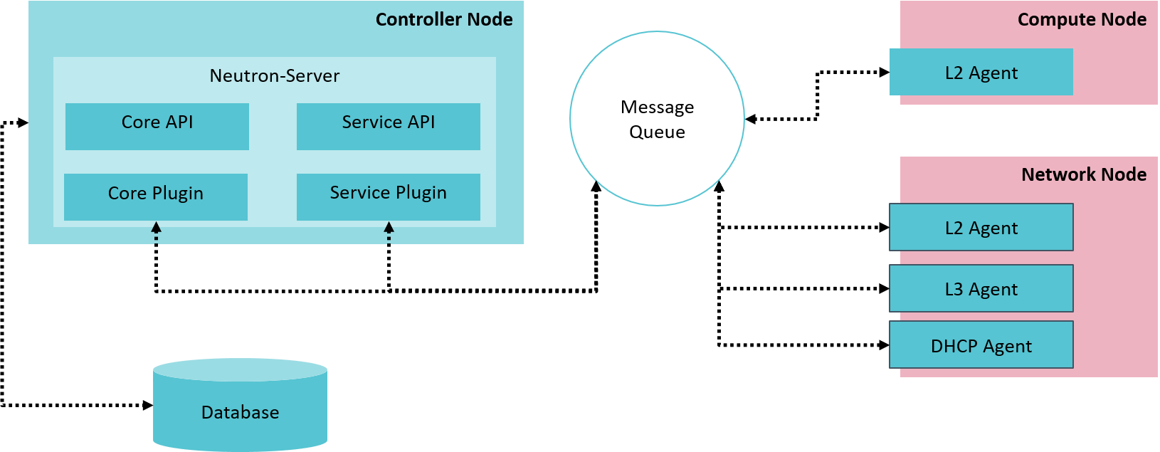 - Neutron-server使用Message Queue与其他Neutron agents进行交换消息,但是这个Message Queue不会用于Neutron-server与其他OpenStack组件(如nova )进行交换消息。