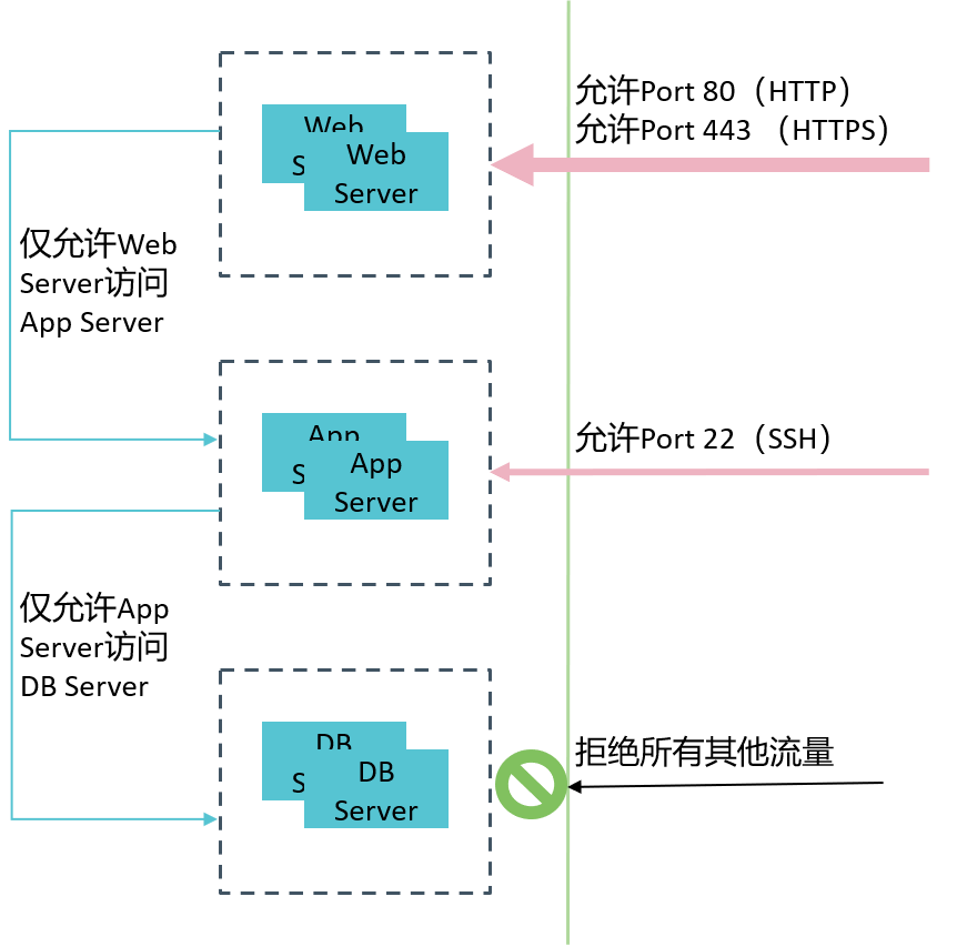 安全组默认拒绝所有流量,只有添加了放行规则的流量才允许通过