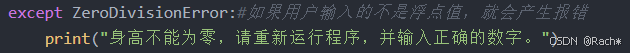 except ZeroDivisionError:#如果用户输入的不是浮点值,就会产生报错
