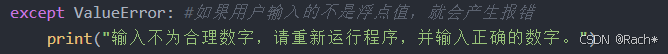 except ValueError: #如果用户输入的不是浮点值,就会产生报错