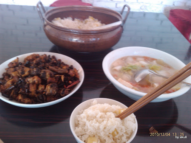 终于吃到想了好久的铜锅洋芋饭了(貌似这家味道不如以前吃的,锅巴都没一点),辣子鸡30、铜锅洋芋饭10、三鲜汤5.