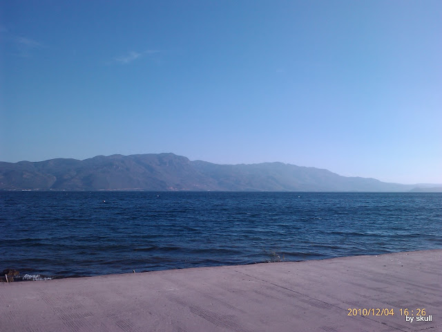 12点到达县城溜达了一圈,在糕点店买了二份面包(5.5RMB)准备路上当作干粮.出城沿着抚仙湖左岸骑行,在湖边找了家