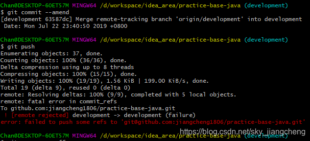 使用网上推荐的另一个方案 git merge --no-off 又失败了