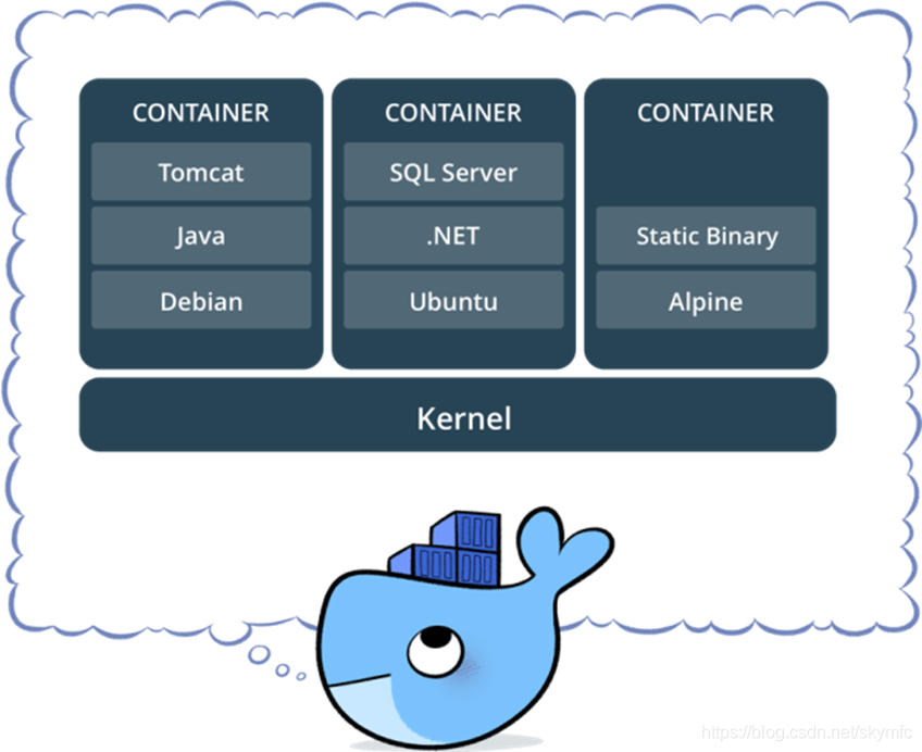 其次为上一层,即在OS层上部署一层新的应用,然后打成镜像发布,此时对外的则直接为应用本身;