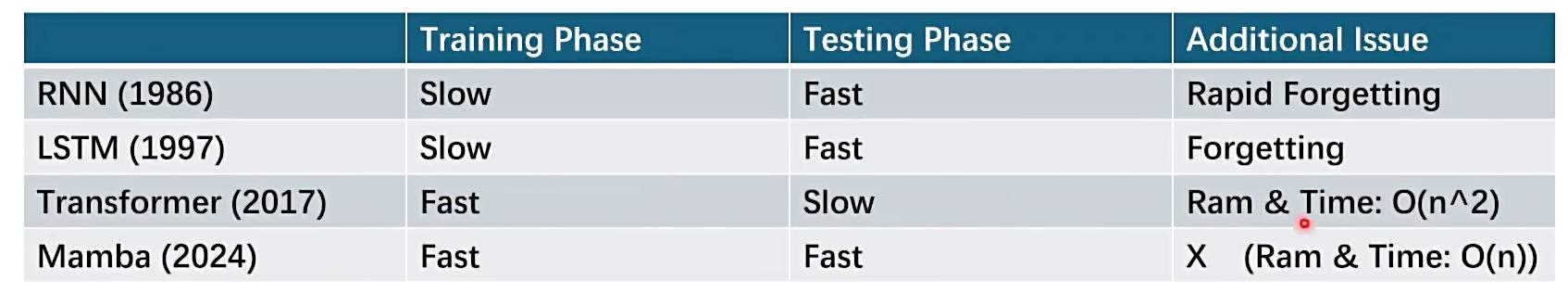 SSM 本质上是一个 CNN 化的 RNN,采用并行处理结构代替了原本的递归 RNN 。例如在生活中读一本书,时许嵌套的 RNN 每次只能读一行, 然后把记忆传递到下一行,这种方式只适合处理短故事,故事一长,容易忘记之前的情节。而 SSM 并行处理,相当于同时打开所有页看到每行内容,这样就能够快速找到和理解整本数。