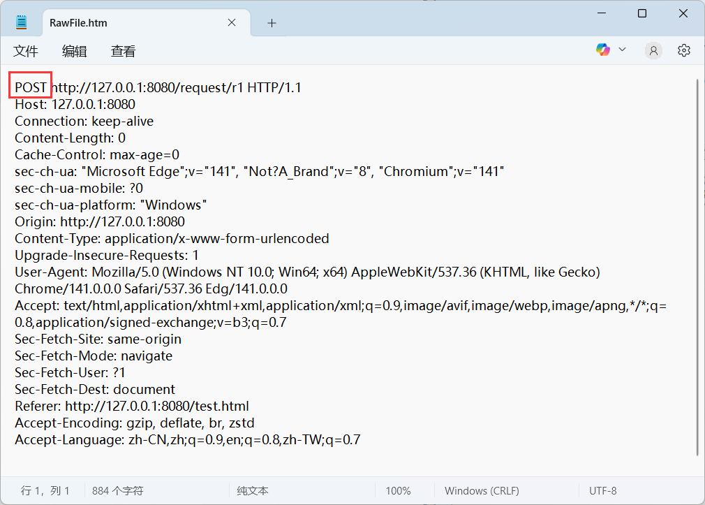 构造POST请求:我们通过form表单来构造请求,创建test.html: