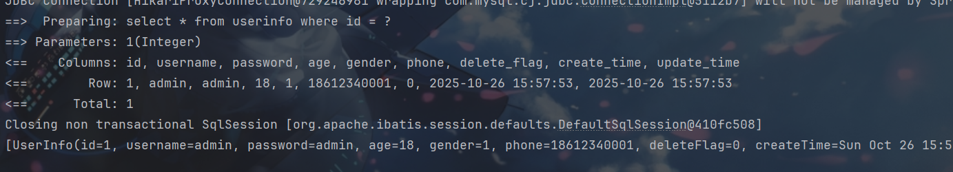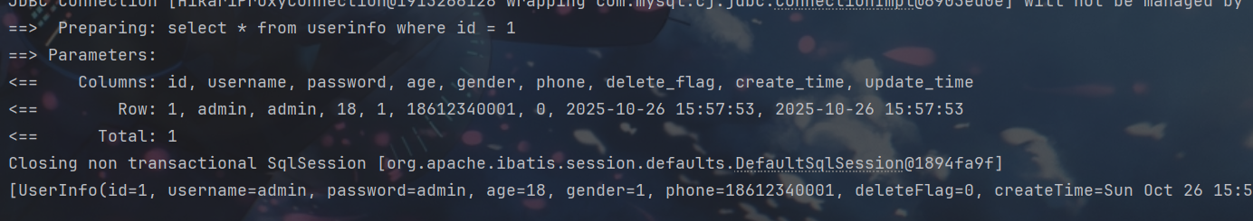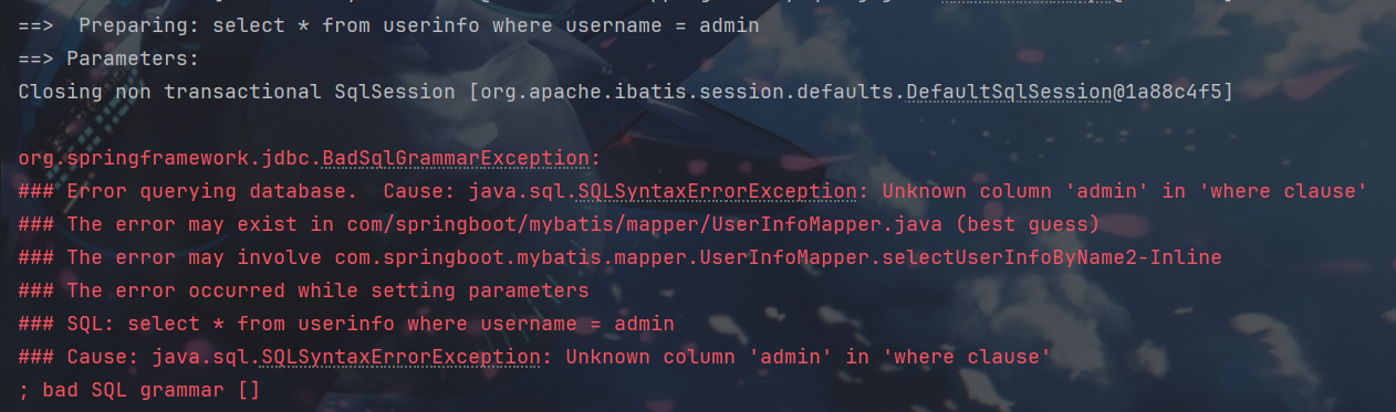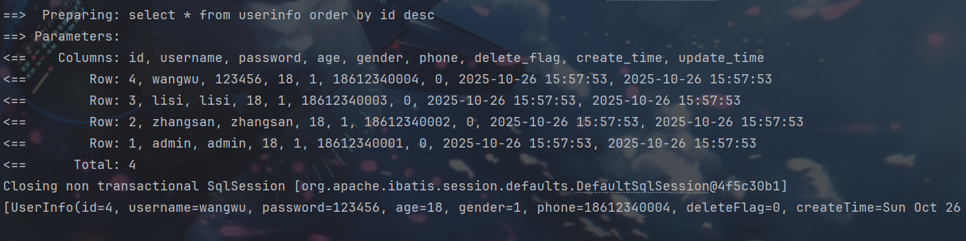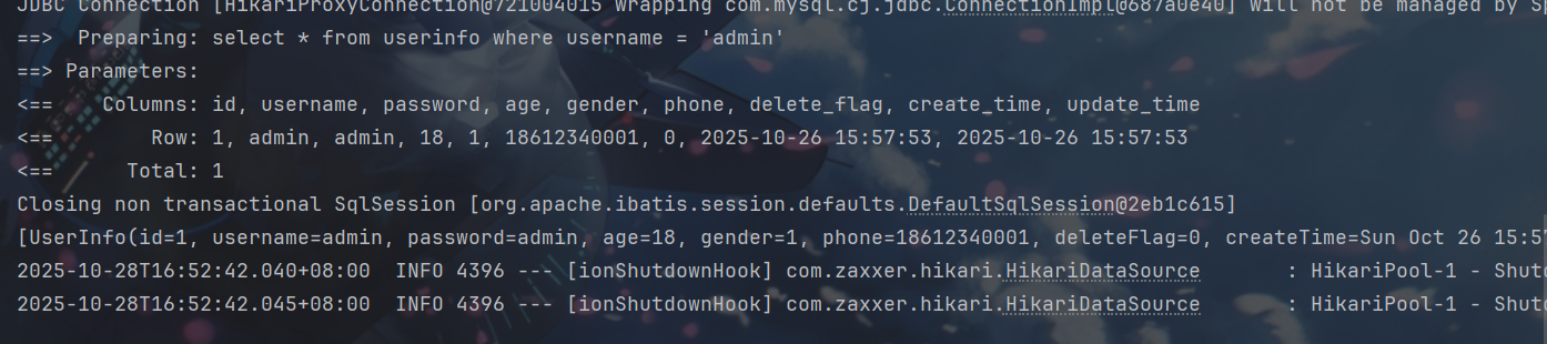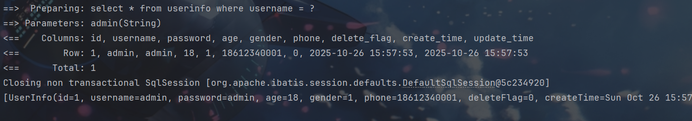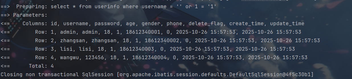 System.out.println(userInfoMapper.selectUserInfoByName2("' or 1 = '1"));