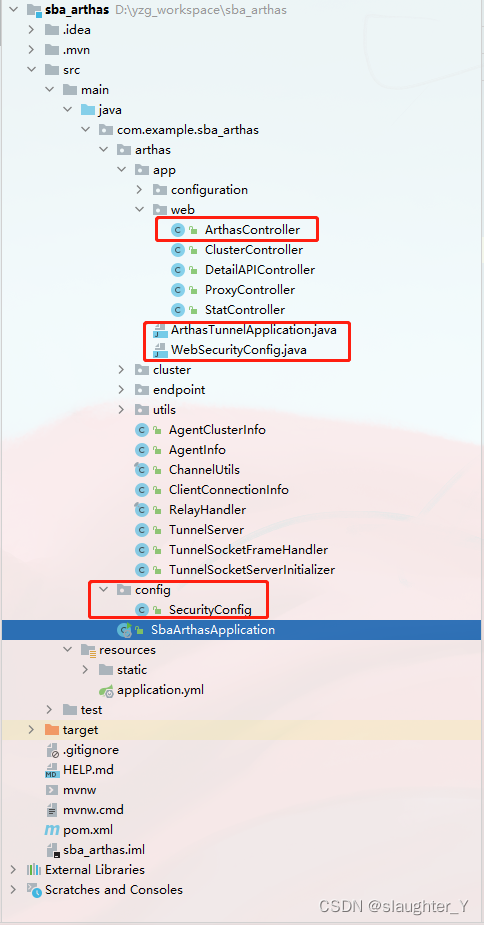 - 拷贝tunnel-server下代码到SBA中,Arthas目录结构如下