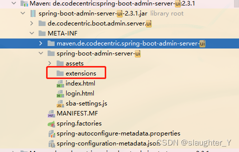 SBA启动后访问的页面是spring-boot-admin-server-ui依赖的页面,外链指向的地址是希望通过maven打包的方式将static静态资源打入到该目录下。