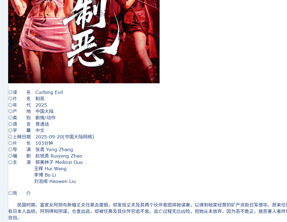 爬取的是国内电影这个分区,如图所示,点击进入爬取详细页信息