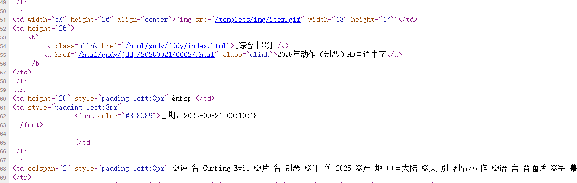 本次爬虫主要目标是爬取电影天堂网站里的,一些电影的信息页信息,例如片名、译名、类别等