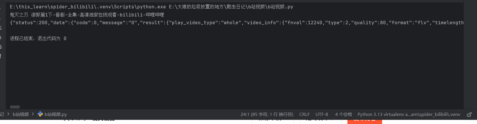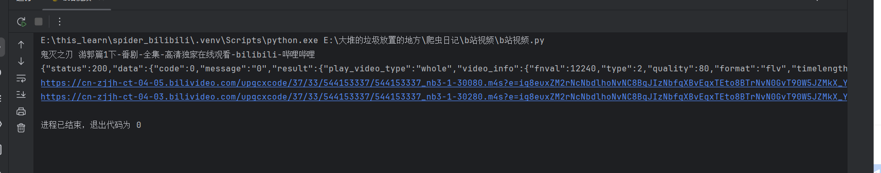 这时候再根据字典的规则去把视频链接提取出来,需要注意的是,b站的视频资源爬取的音频和画面分离的,需要分别爬取画面和音频,所以这里我们也需要分别提取视频的画面链接和音频链接