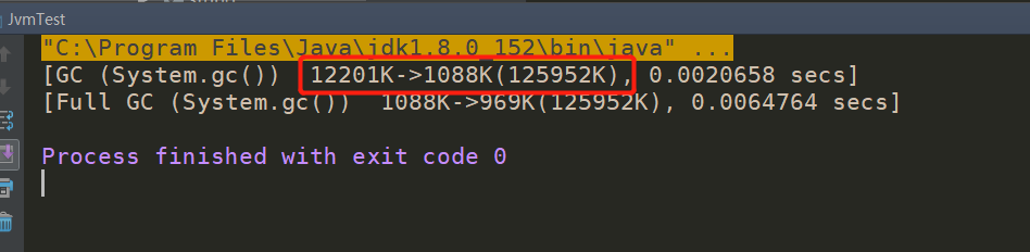 我们看到12201K->1088K(125952K)的输出,表示垃圾收集GC前有12201K,回收后剩下1088K,堆的总量为125952K,回收的内存为12201K-1088K = 11113K。