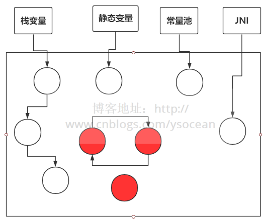PS:红色的对象是要被当做垃圾回收的!