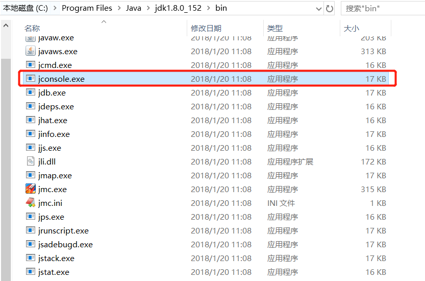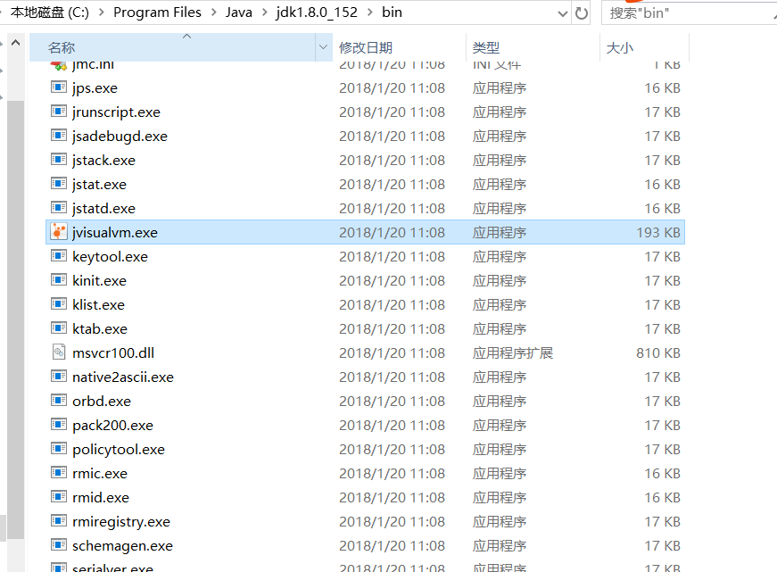 这是我们JDK自带的监控工具,在JDK的安装目录bin下即可找到。