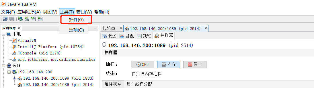JVisualVM 比较强大的地方在与可以安装各种插件,提供各种不同的功能。