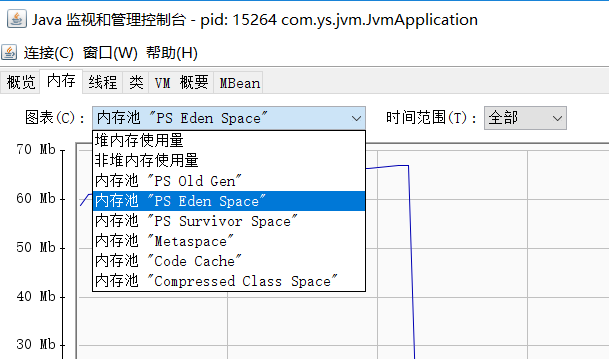 这个页签相当于上一篇博客介绍的jstat命令,不过这里是可视化的。用于监视虚拟机内存的一些变化趋势。