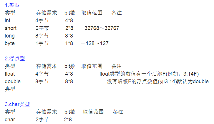 我们先看看Java 各数据类型所占字节数: