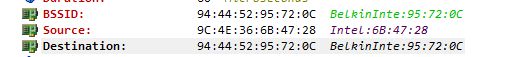 其实还有一点可以补充的是,我们知道二层MAC广播地址是FF:FF:FF:FF:FF:FF,到无线里面,还是这个地址,同时对应的BSSID也是这个地址,如下