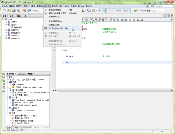 因为最小系统板没有外接晶振,所以要选择使用内部晶振,看门狗也关闭,还有一个是LVP这个要设置为OFF,否则下载后不运行,下面贴设置方法