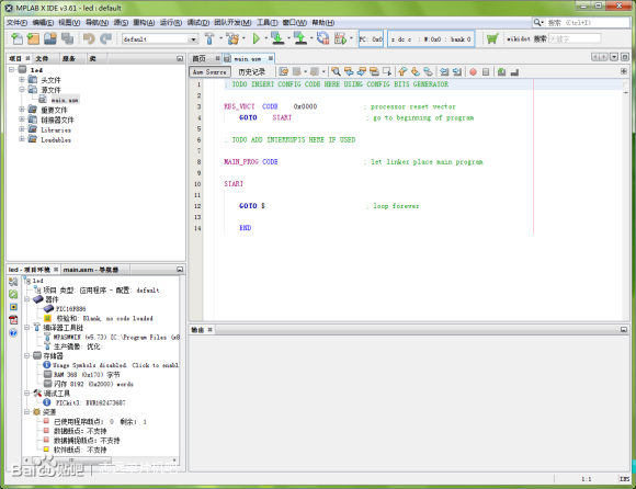学习PIC单片机的目的是打算做一款433M无线开关,之前学习过51与AVR单片机,对8位单片机有一些基础,不过PIC单片机还是第一次接触,先从入门开始吧!入门实验最经典的是点亮一只LED了,这次也它为例走一遍PIC开发的整个流程。虽然C语言已成主流,由于PIC单片机汇编指令只有35条,记忆容易,这次就从非主流开始!