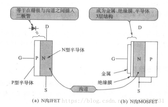 JFET的栅极与沟道(D,S间叫沟道)间有PN结,所以认为存在着二极管(由于有PN结,所以称为结型FET)。